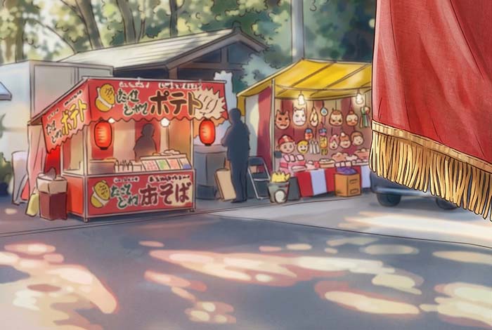 and the courtyard fills with food stalls selling yakisoba and takoyaki cooked entirely by the teenagers themselves.