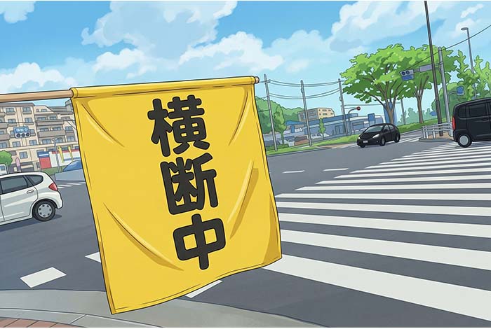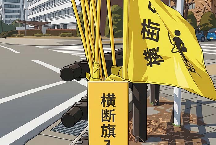 This system is called “Hataburi” (Flag Waving). It is a massive, nationwide volunteer effort. The people holding the flags are usually rotating groups of local parents, grandparents, and neighborhood association members who take turns protecting the community’s children.