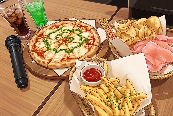 Surviving an “Ooru” requires strategy. Around 3 AM, half the group is usually aggressively singing anime theme songs with tambourines, while the other half has completely passed out, sleeping peacefully on the leather sofas. Whenever energy drops, you simply use the phone on the wall to order a massive plate of french fries.