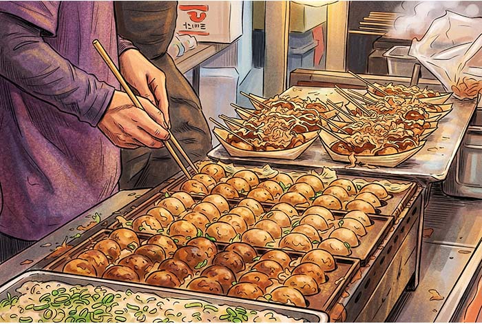While SoCal has its famous taco trucks and Eloteros, a Japanese Yatai offers a completely different, intensely savory menu. The undisputed kings of the festival are “Takoyaki” (molten, savory octopus balls) and “Yakisoba” (sizzling stir-fried noodles cooked on massive iron plates). The smell of sweet soy sauce and grilled squid fills the entire neighborhood.